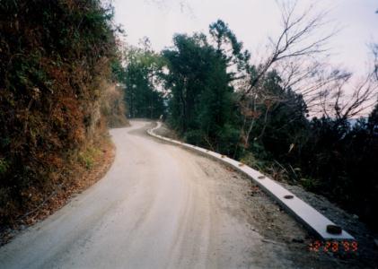 大森トンネル手前で、このように材木の積み出し作業を行っているおり、吾北村側から大森トンネル進入はできません。おそらく、この積み出し作業のために旧道を手入れしたのでしょう。 |